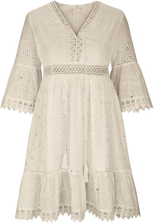 Women's Boho Summer Tunic Dress | Crochet Trim, 3/4 Sleeve